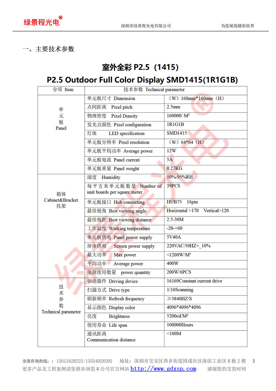 綠景程光電戶外P2.5-SMD1415-16S-160X160mm