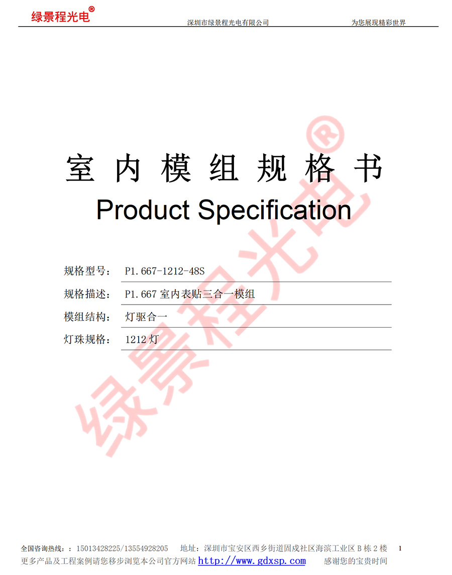 綠景程光電室內(nèi)P1.667-SMD1212-48S-320X160mm
