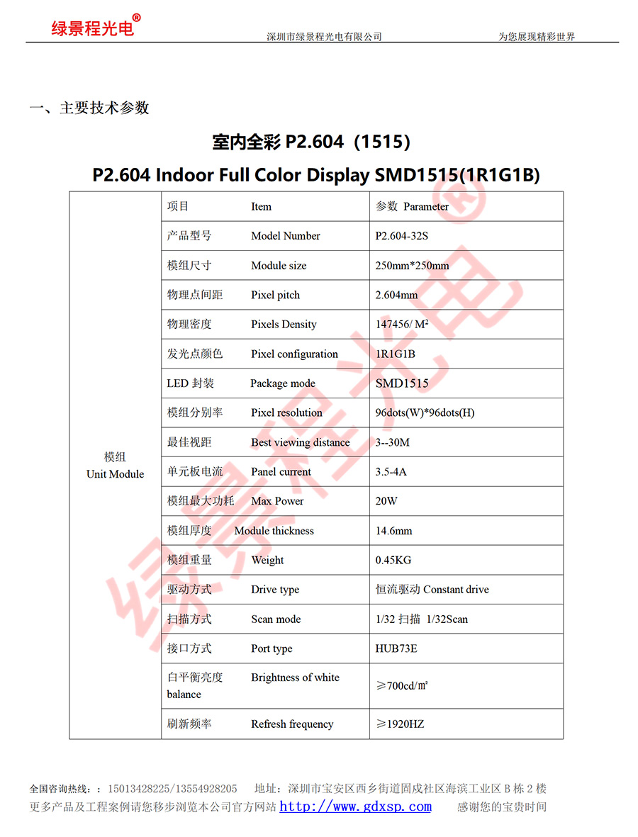 綠景程光電室內(nèi)P2.604-SMD1515-32S-250X250mm