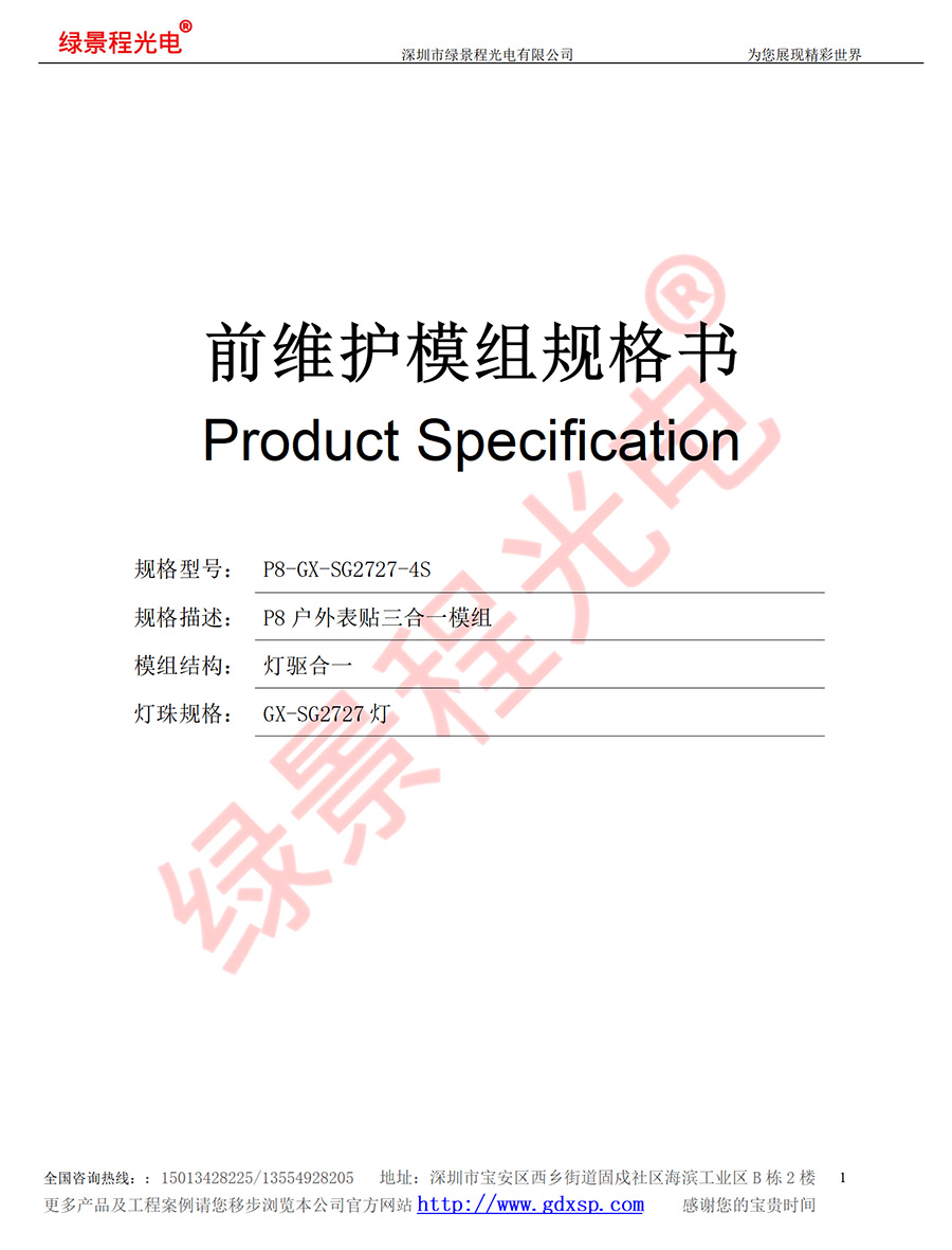 綠景程光電戶(hù)外前維護(hù)P8-SMD-GX-SG2727-4S-320X320mm